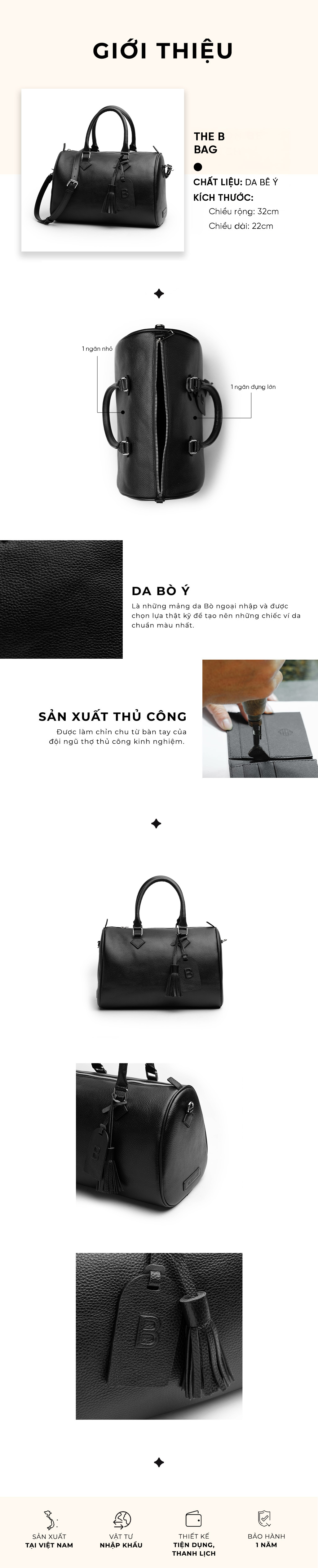 Chiếc túi da Be Classy được chế tác từ da bò Ý cao cấp, mang cấu trúc vân tự nhiên đầy sang trọng và độ bền vượt trội. Thiết kế dáng trống (duffle mini) với form chuẩn, đường cắt may sắc nét và chi tiết tag chữ B đi kèm tạo nên vẻ chỉn chu, tinh tế cho mọi quý ông hiện đại.