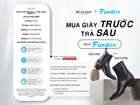 Fundiin là hệ thống đơn vị trả góp uy tín hàng đầu Việt Nam. Từ hôm nay, Be Classy chính thức thích hợp Fundiin vào các phương thức thanh toán của Be Classy khi mua giày trực tiếp và mua Online tại Website. Giúp Quý Ông có thể thanh toán tiện lợi và dễ dàng hơn.