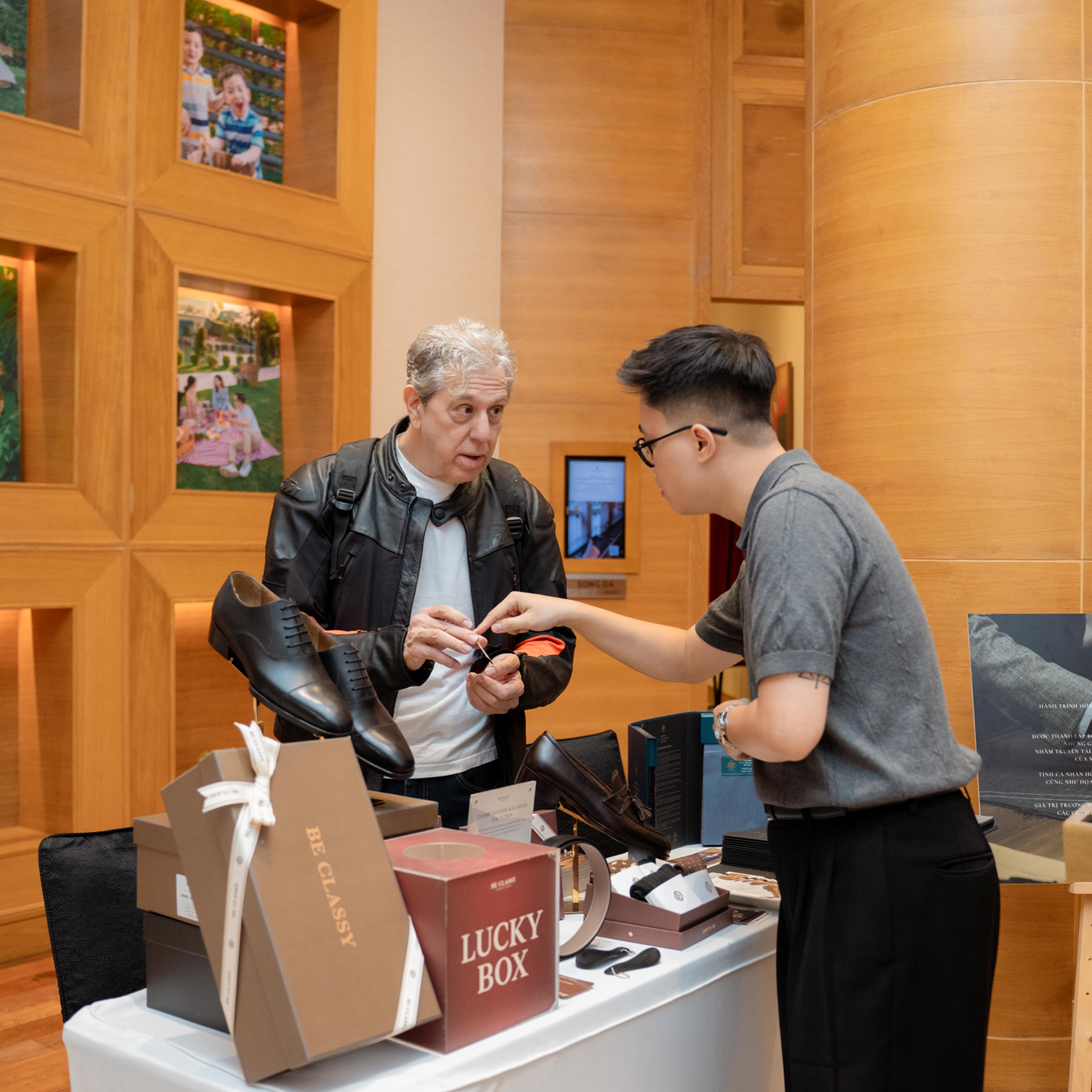 Tại đây, Be Classy đã giới thiệu những thiết kế giày da và phụ kiện thủ công cao cấp, mang đến các lựa chọn lý tưởng cho chú rể yêu thích sự thanh lịch và sang trọng.