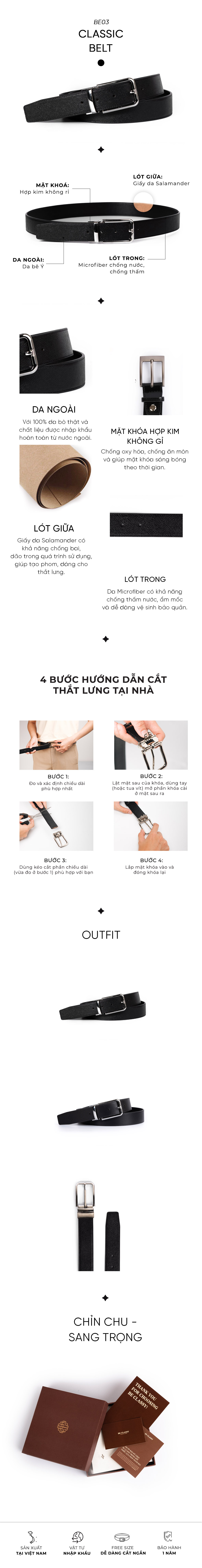 CLASSIC BELT từ Be Classy với thiết kế tinh giản, thanh lịch từ vẻ đẹp cổ điển tạo sự cân bằng cho tổng thể trang phục, một điểm nhấn làm rõ hơn về gu thời trang và sự chỉn chu của bạn.