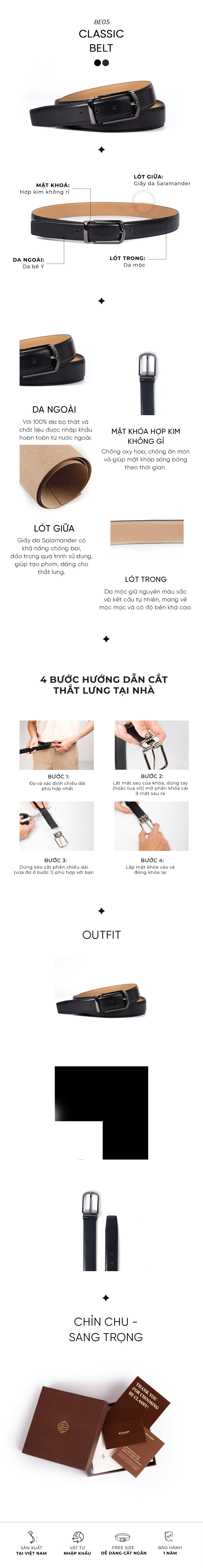 Một chiếc thắt lưng da được kết tinh từ sự tinh giản và cổ điển, CLASSIC BELT từ Be Classy là người bạn đồng hành không thể thiếu trong tủ đồ của những Quý Ông yêu thích sự thanh lịch và khác biệt.