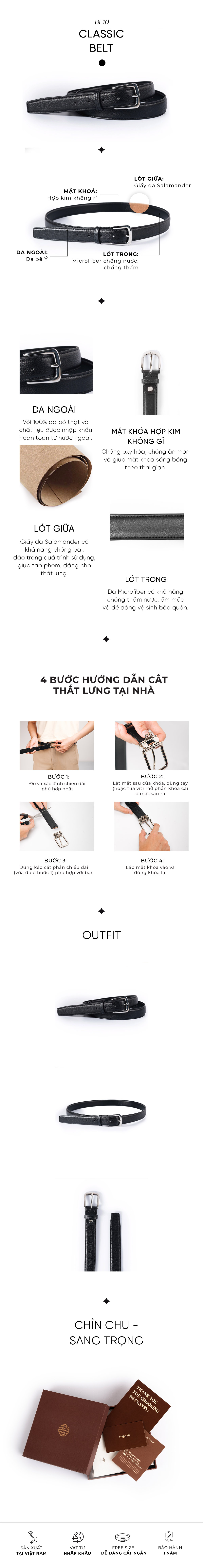 Những chiếc thắt lưng da là item không thể thiếu trong việc nâng tầm phong cách cũng như khẳng định vị thế của các quý ông. Thắt lưng làm hoàn toàn từ da thật đó là chất liệu da Bò Ýcao cấp, và được làm thủ công từ đôi bàn tay của những người thợ lành nghề lâu năm.
