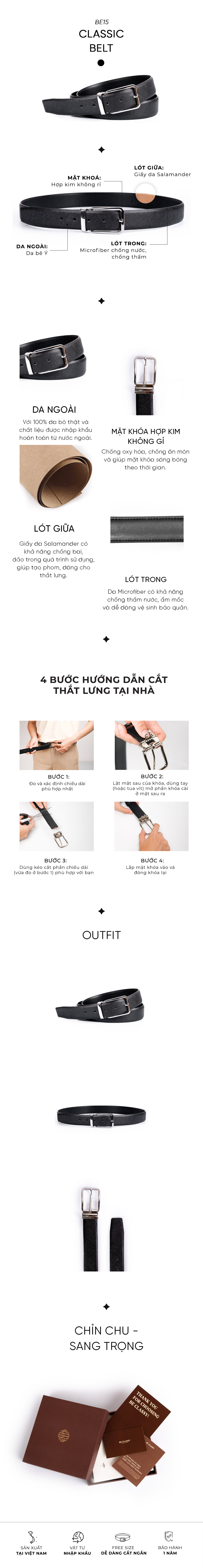 Những chiếc thắt lưng da nam là item không thể thiếu trong việc nâng tầm phong cách cũng như khẳng định vị thế của các quý ông. Thắt lưng làm hoàn toàn từ da thật đó là chất liệu da Bò Ý cao cấp, và được làm thủ công từ đôi bàn tay của những người thợ lành nghề lâu năm.