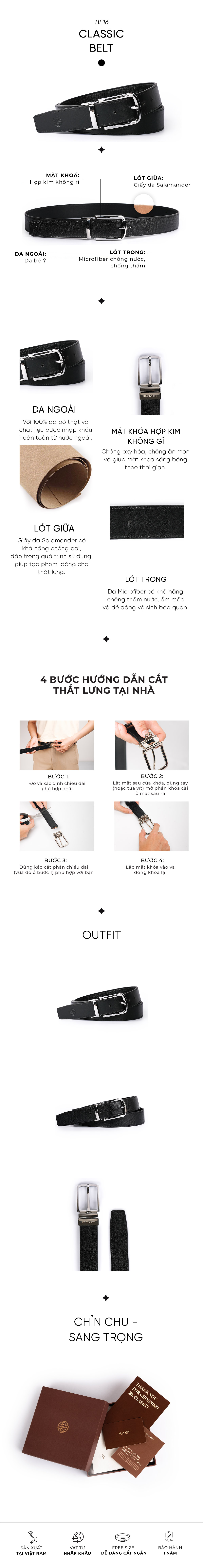 Với thiết kế tối giản và bảng màu đa dạng, Classic Belt là mẫu dây nịt da dễ dàng kết hợp cùng mọi trang phục, tạo điểm nhấn hoàn hảo cho phong cách của các quý ông. Đây chính là món phụ kiện mà các quý ông có gu không thể bỏ qua tại Be Classy.