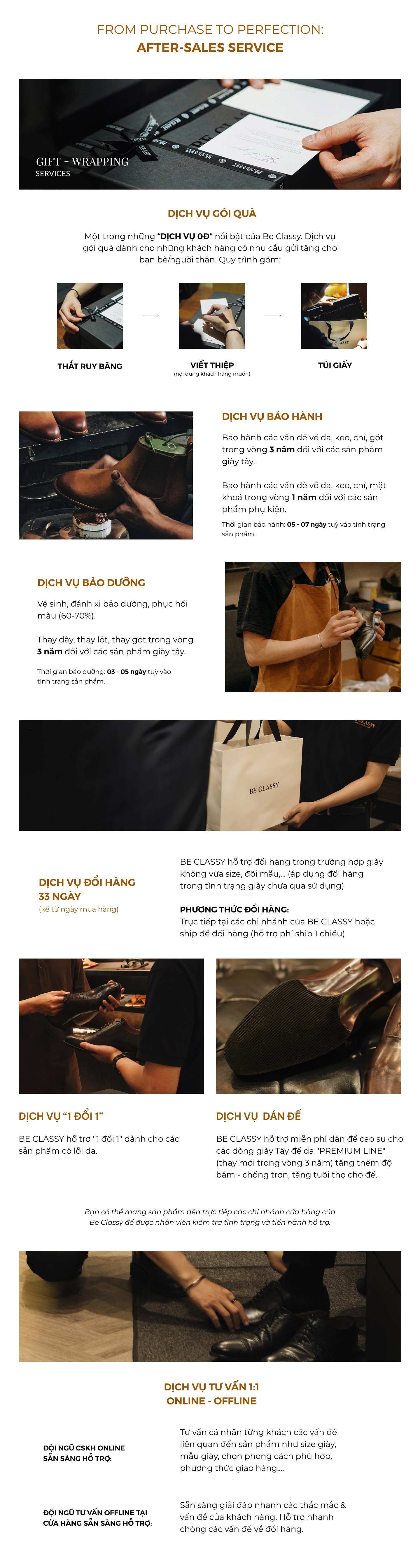 *Thông thường các Size giày Tây của Be Classy sẽ tương ứng với Size giày thể thao của Nike, Adidas...