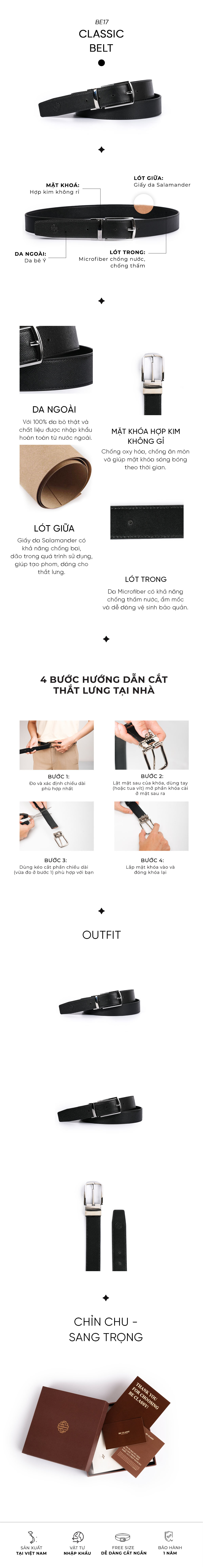 CLASSIC BELT - Mẫu thắt lưng da từ Be Classy là sự kết hợp hoàn hảo giữa chất liệu da Bò Ý cao cấp và tay nghề tinh xảo của những người thợ thủ công giàu kinh nghiệm.