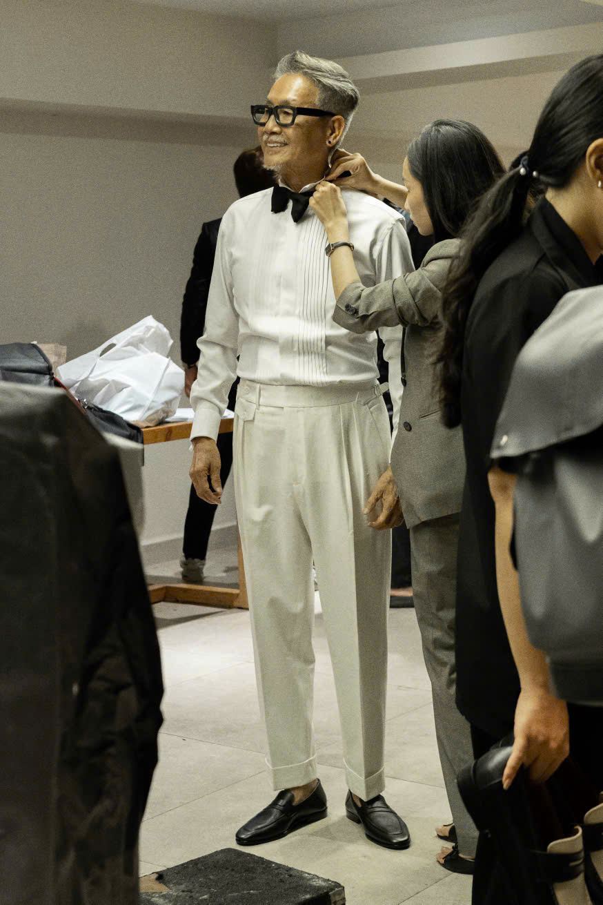 Trước thềm sự kiện, hậu trường trở nên sôi động với không khí chuẩn bị gấp rút. Hơn 20 đôi giày Tây được sắp xếp tỉ mỉ để fitting cùng 20 model, mỗi bước đi đều phải thật chỉn chu, đúng tinh thần quý ông. Ngoài ra, những đôi giày dự phòng cũng được chuẩn bị kỹ lưỡng cho đêm diễn, đảm bảo sự hoàn hảo trong từng khoảnh khắc trên sàn runway.