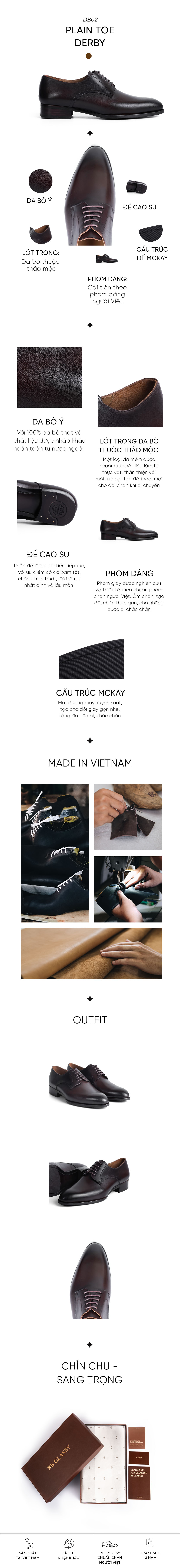 Dành cho Quý Ông hướng đến vẻ đẹp lịch lãm, PLAIN TOE DERBY là sự kết hợp khéo kéo của tiêu chuẩn giày da cao cấp hiện đại, nhưng vẫn đảm bảo độ sang trọng qua phom dáng cổ điển.