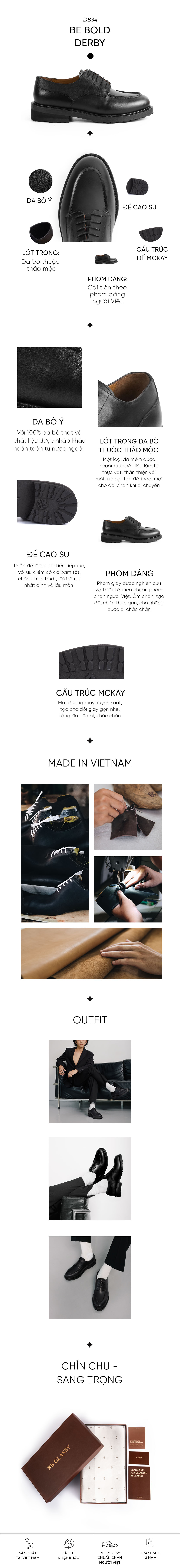 Với sự kỳ công và tỉ mỉ trong thiết kế lẫn chất liệu, Be Classy tin chắc rằng đôi giày Derby này sẽ giúp các quý ông nâng tầm phong cách cá nhân, đồng thời thể hiện cái tôi của bản thân.