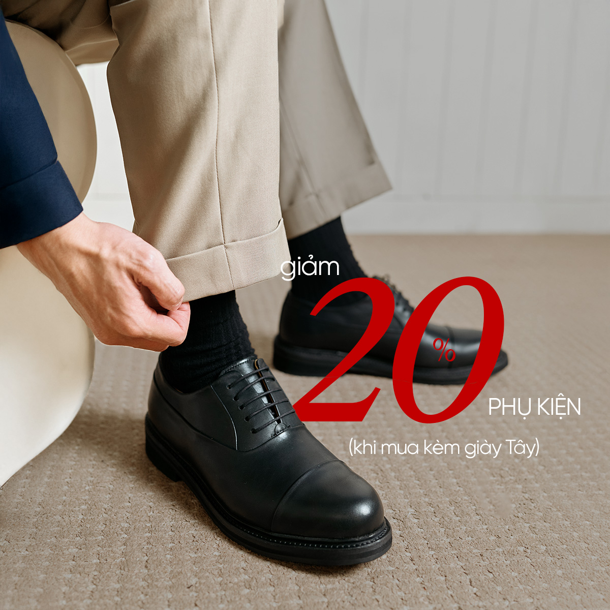 - GIẢM 20% khi mua phụ kiện kèm giày Tây – Cách tối ưu để sở hữu trọn vẹn sự hoàn hảo.