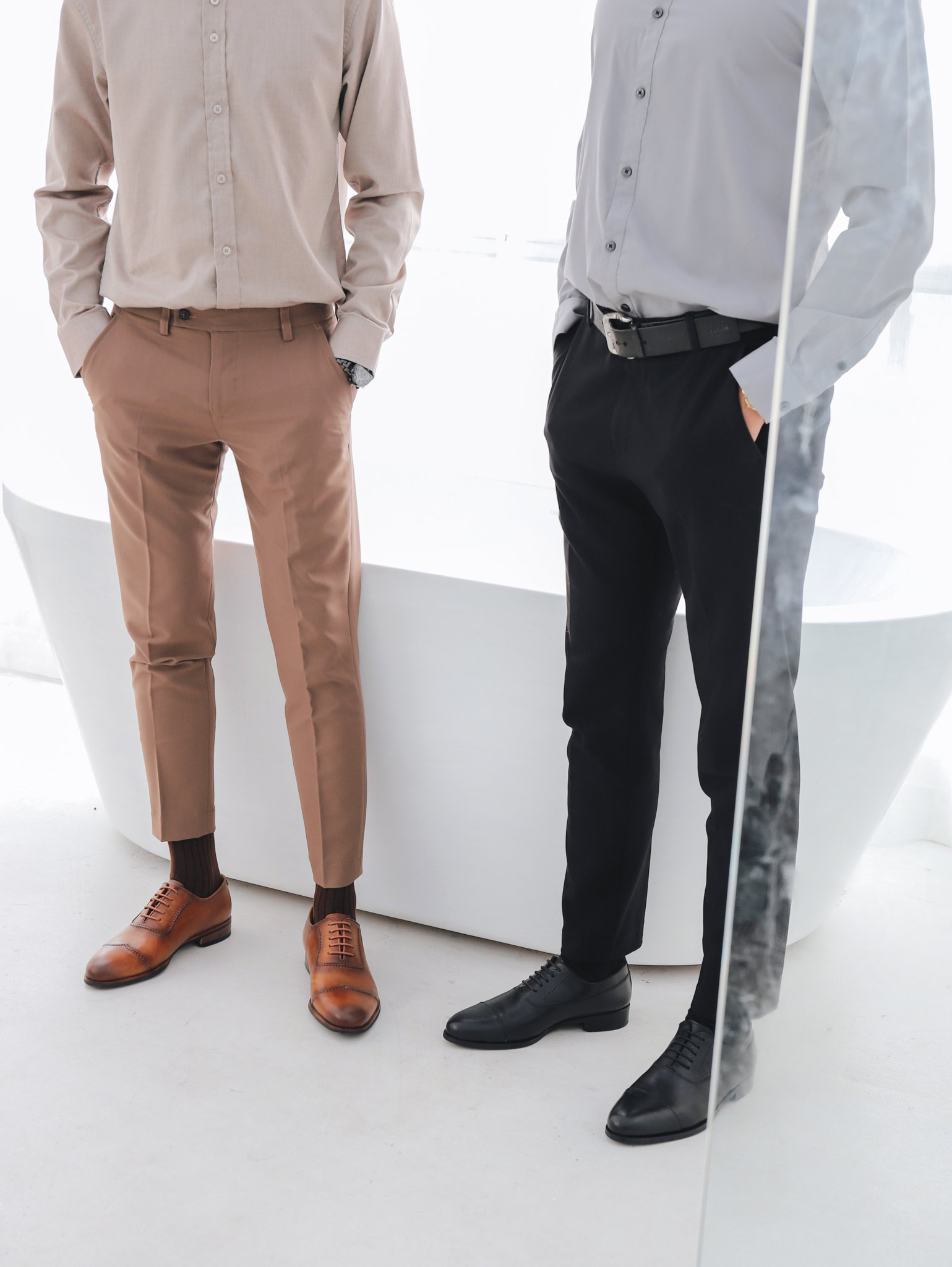 Về giày Tây Oxford thì những đôi Oxford có thiết kế đơn giản hoặc Loafer sẽ là lựa chọn hoàn hảo trong kiểu Outfit như thế này. Vì tất cả kết hợp đều tạo nên phong cách thanh lịch để Outfit công sở không nhàm chán.