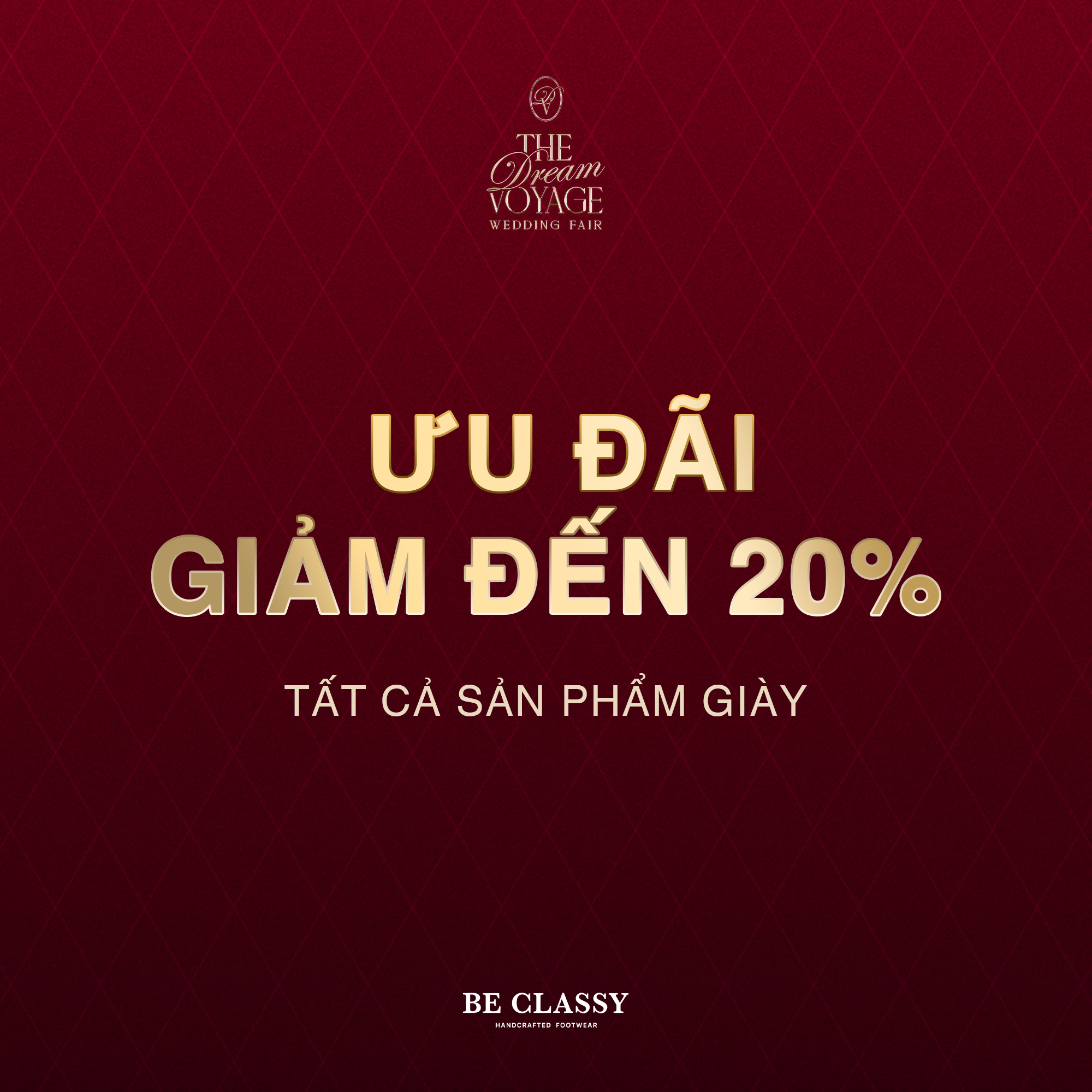 Tại gian hàng Be Classy, bạn sẽ được trực tiếp trải nghiệm những thiết kế giày Tây sang trọng, chuẩn mực cho chú rể hiện đại. Cùng với đó là hàng loạt ưu đãi hấp dẫn: