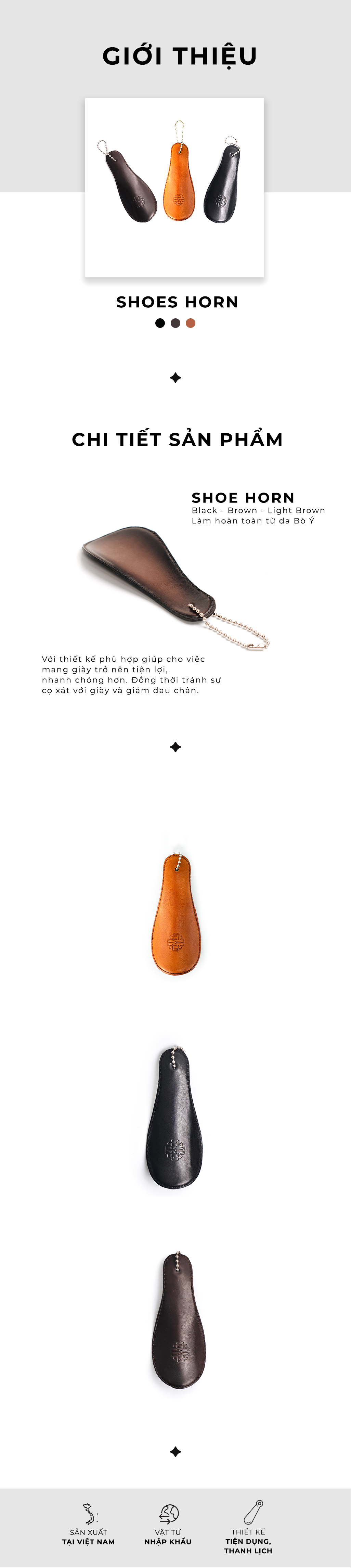 Dụng cụ Đón Gót giúp bạn dễ dàng mang giày mà không làm nhăn cổ giày. Sản phẩm được bọc bằng Da Bò Cao Cấp, kích thước nhỏ gọn tiện lợi dễ mang theo bên mình.