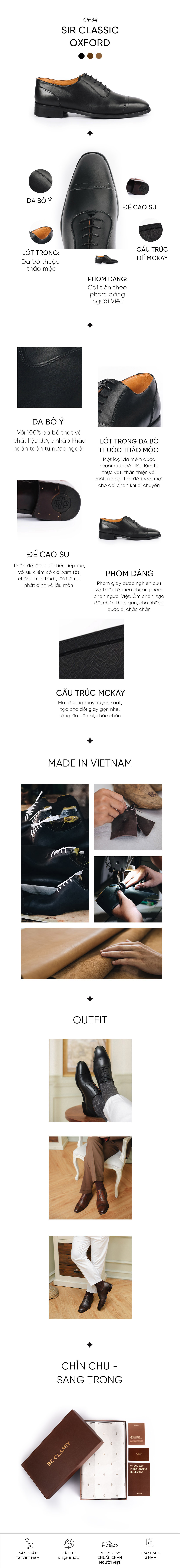 Sở hữu thiết kế tối giản, sang trọng của những đôi Oxford cổ điển, kết hợp cùng với đó là chất liệu da Bò Ý cao cấp, Sir Classic Oxford chắc chắn sẽ là lựa chọn hoàn hảo giúp khẳng định vị thế của các Quý ông.