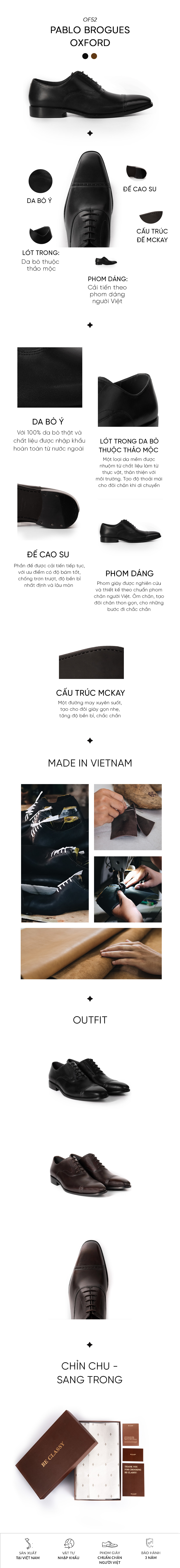 Là phiên bản giày Oxford sở hữu phom dáng toát lên sự sang trọng, sẵn sàng giúp quý ông tạo nên một vẻ ngoài thật bảnh bao. PABLO BROGUES OXFORD - đôi Oxford lịch lãm dành riêng cho bạn.