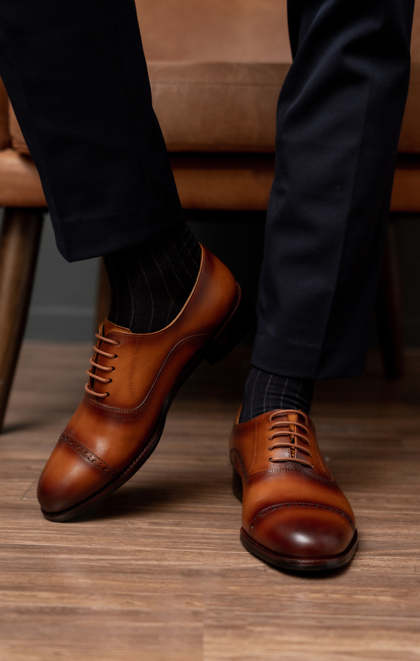 Những đôi Charles Captoe Oxford luôn được biết đến là “dễ chiều” khi có thể mix&match với mọi trang phục. Ngoài kiểu dáng basic, kỹ thuật đánh màu Patina vô cùng đặc sắc cũng là một trong những lý để quý ông “ưu ái” đôi giày này.