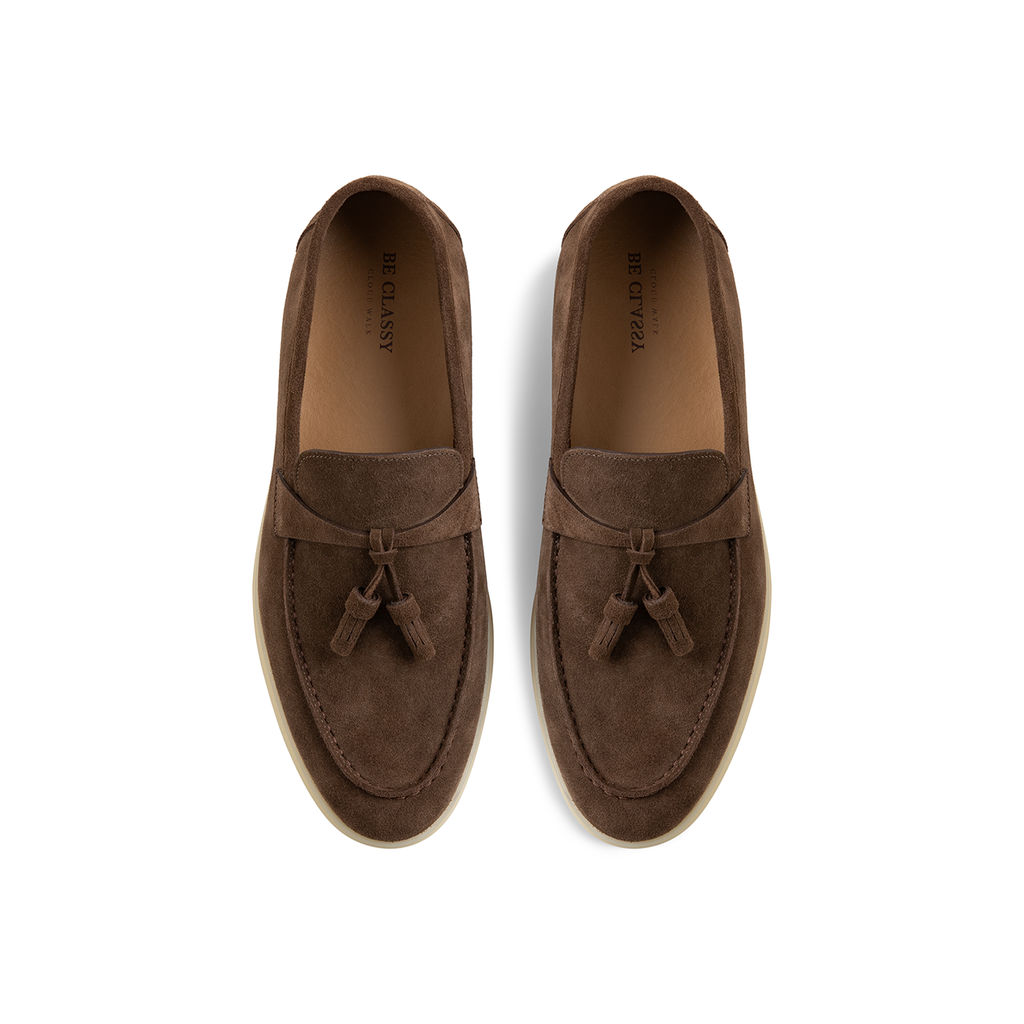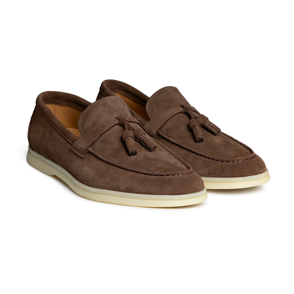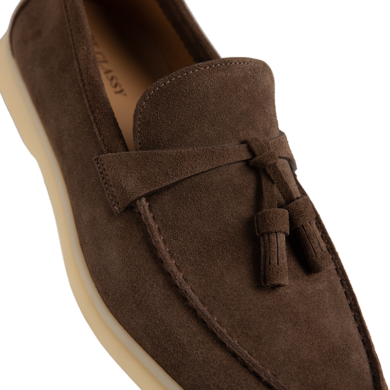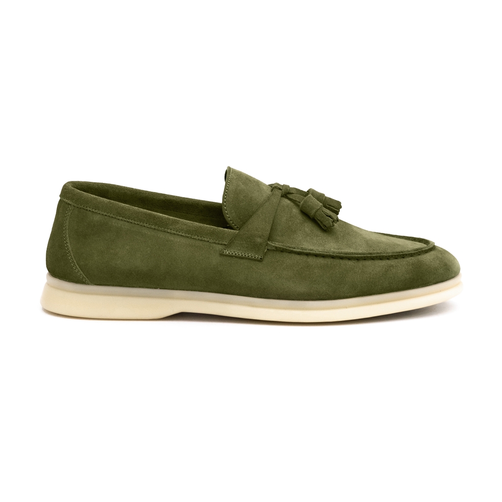 CLOUD WALK TASSEL LOAFER chinh phục ánh nhìn bằng phom loafer thanh lịch, tua rua chế tác xảo. Da lộn cao cấp sắc olive ấm áp, bề mặt mịn màng, gợi tinh thần cổ điển.