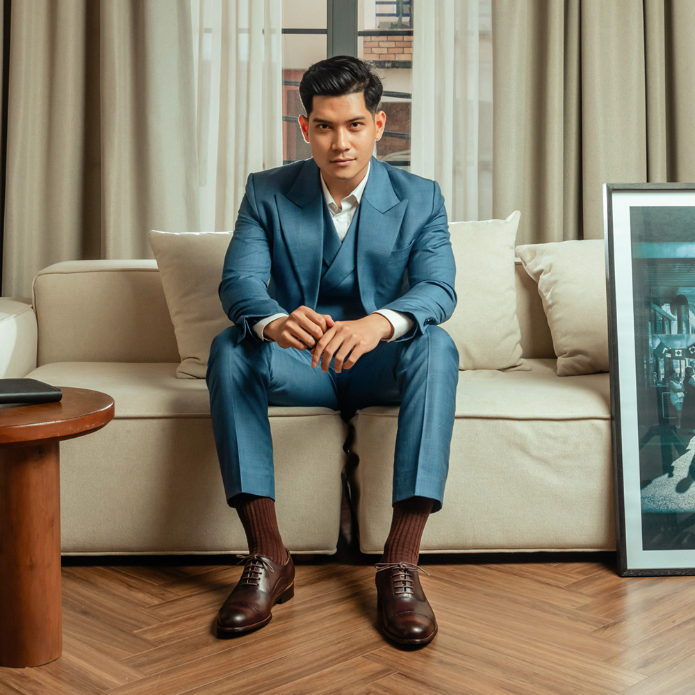 Suit hiện đại thường có phần ống quần vừa hoặc hơi ngắn trên mắt cá, vì vậy hãy chọn giày có phom gọn, mũi thanh, đế mỏng để tạo sự cân đối và tinh tế. Đặc biệt, những đôi được thiết kế ôm chân, giúp người mặc cao hơn, thanh thoát hơn.