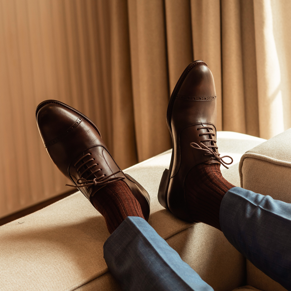 Đừng để một đôi tất lệch tông hay thắt lưng sai màu phá hỏng cả tổng thể. Tất nên tiệp với màu quần, thắt lưng phải đồng điệu với giày. Và hãy nhớ, một đôi giày được đánh bóng sạch sẽ cũng là cách bạn thể hiện sự tôn trọng với chính mình và người đối diện.