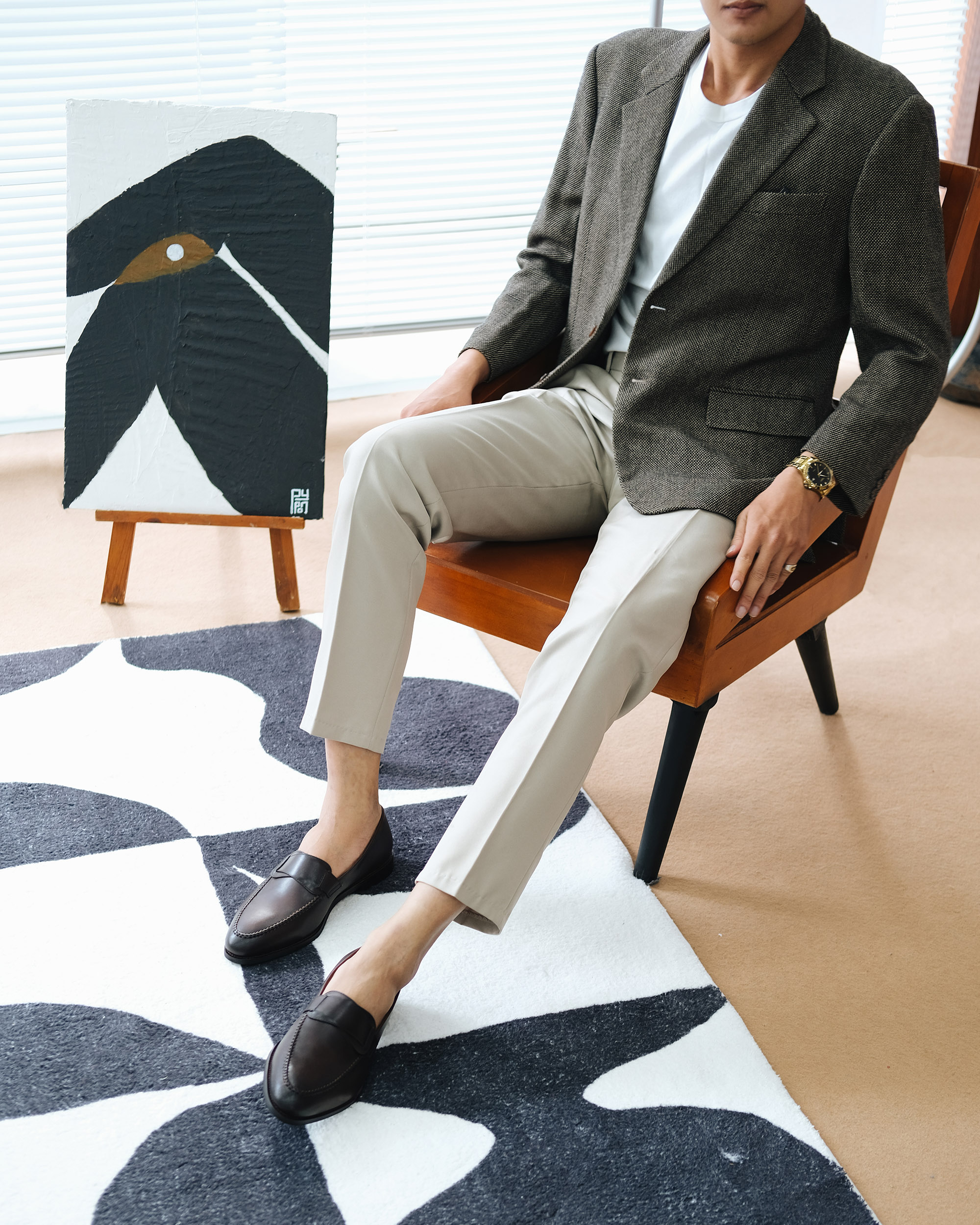 Với phong cách này, bạn có thể chọn một đôi Oxford hoặc Loafer để phối cùng vì sự tiện lợi và dễ dàng phối hợp của trang phục.