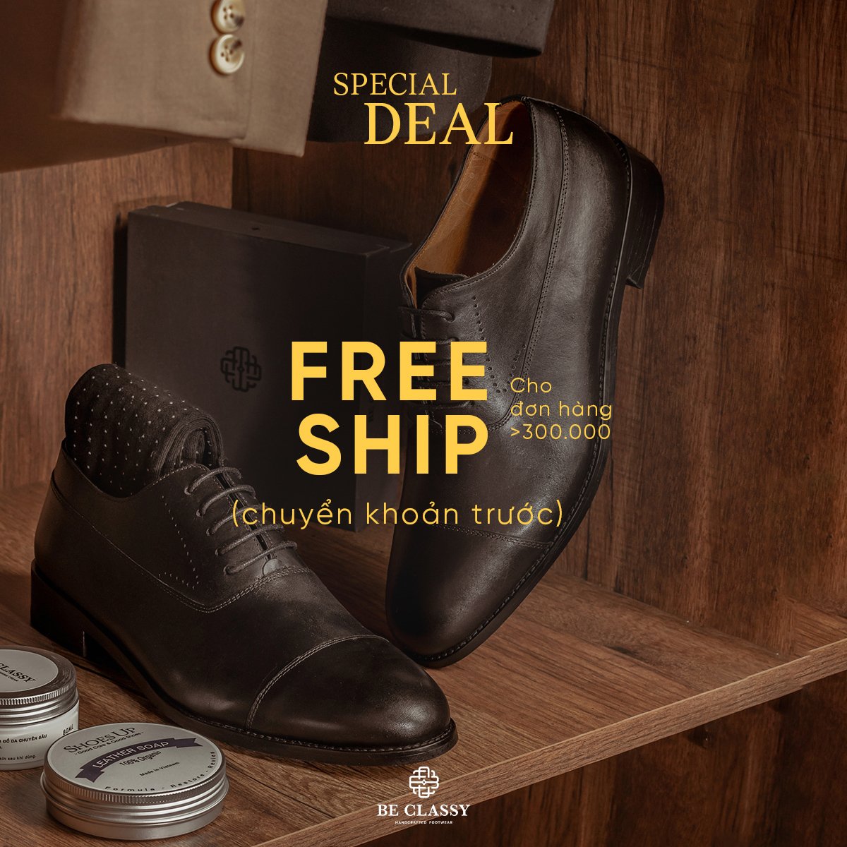 SPECIAL DEAL - COMBO ưu đãi được tích hợp tặng Tất và giảm 20% phụ kiện khi mua giày Tây.