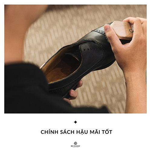Tập trung vào hậu mãi, “lấy khách hàng làm trọng tâm” luôn là tiêu chí hàng đầu tại Be Classy. Bảo hành 3 năm, hỗ trợ các vấn đề về giày da cùng chính sách bảo dưỡng 3 lần miễn phí, giúp cho quá trình chăm sóc giày da tiện lợi và tiết kiệm thời gian.