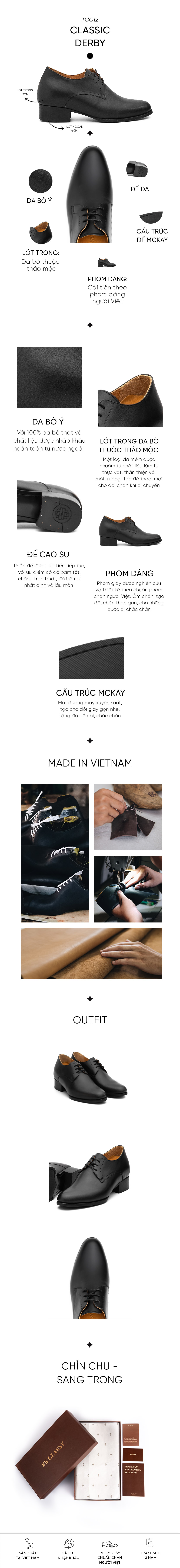 CLASSIC DERBY là bí quyết giúp Quý Ông nâng tầm vóc dáng thêm 7cm một cách tinh tế. Giữ trọn vẻ đẹp kinh điển của dòng Derby kết hợp cùng sắc đen mạnh mẽ vừa hiện đại, vừa lôi cuốn.